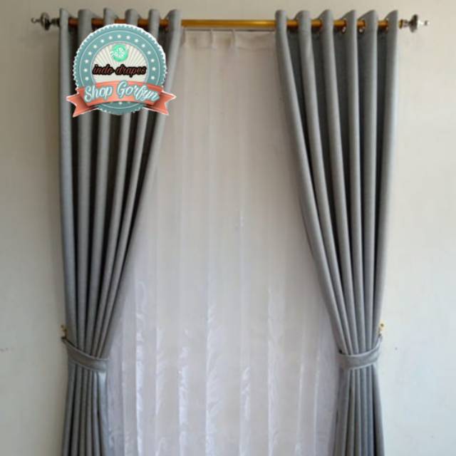 Harga gorden blackout import polos tebal original abu smokring 6 gelembung.