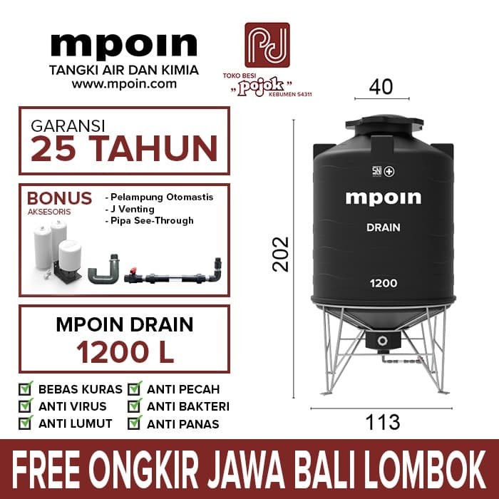 Misalkan saja seperti tandon air merk pinguin stainless dan plastik, tangki air merk profil tank, toren air merk tirta, dan masih banyak lagi yang lainnya. Belanja sekarang juga hanya di bukalapak. Tangki air mpoin plus yang menggunakan desain baru yang elegan, bertekstur ombak yang dapat memperkuat tulang struktur tubuhnya lebih dari model tangki biasa. Tandon air smart marine 2300 liter orange. Free ongkir jakarta only melayani pengiriman jabodetabek ongkos kirim diluar jakarta harap konfirmasi terlebih dahulu daerah.